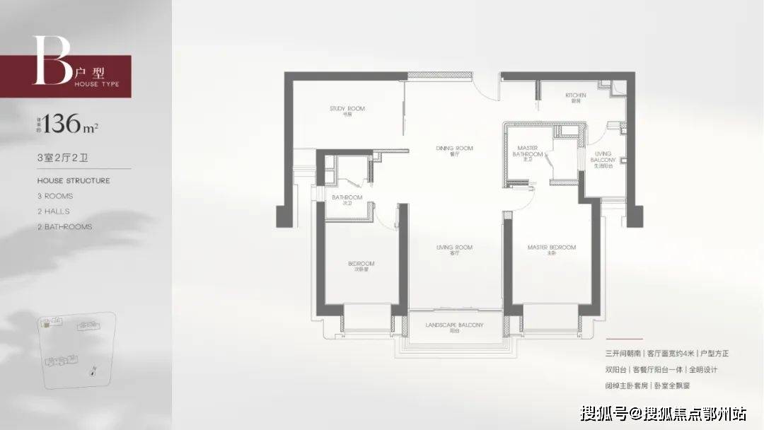 ③:建面136㎡做到了正三房配置,同级项目同面积段才做2.5房,苏河湾1号户型功能性更好,而且你能看到,户型较为方正、利用率高。