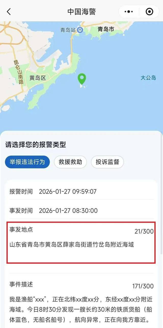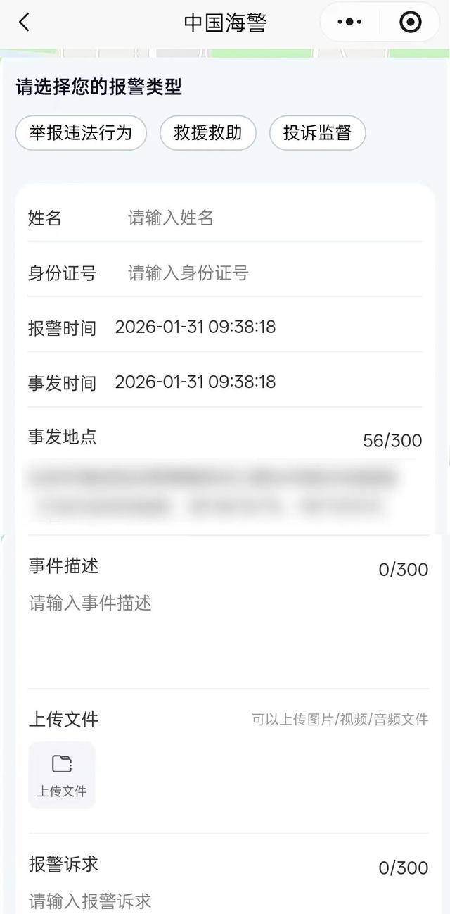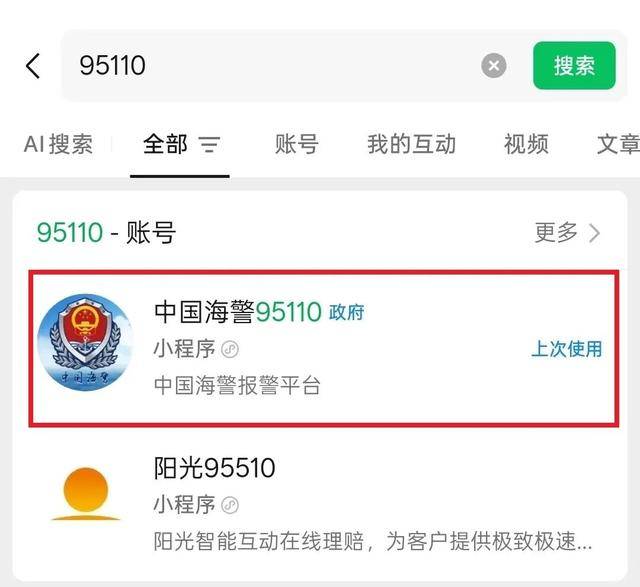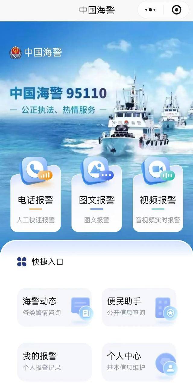大家可通过微信“发现”——“小程序”搜索“中国海警95110”,或关注“中国海警”公众号,点击“海上报警”链接授权注册访问。