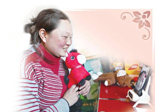 小贺正在跟女儿视频 本报记者 王海欣 摄