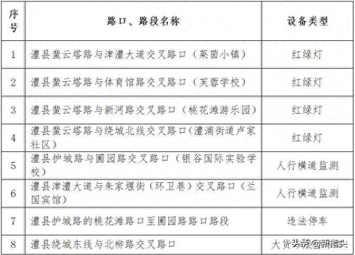 为预防道路交通事故的发生,优化道路通行环境,保障交通参与者安全、畅通出行,根据《中华人民共和国道路交通安全法》《中华人民共和国道路交通安全法实施条例》《中华人民共和国行政处罚法》等法律法规的有关规定,自2026年3月1日0时起,在澧县城区开始启用一批技术监控设备抓拍道路交通安全违法行为。现将新增设备安装点位公示如下: