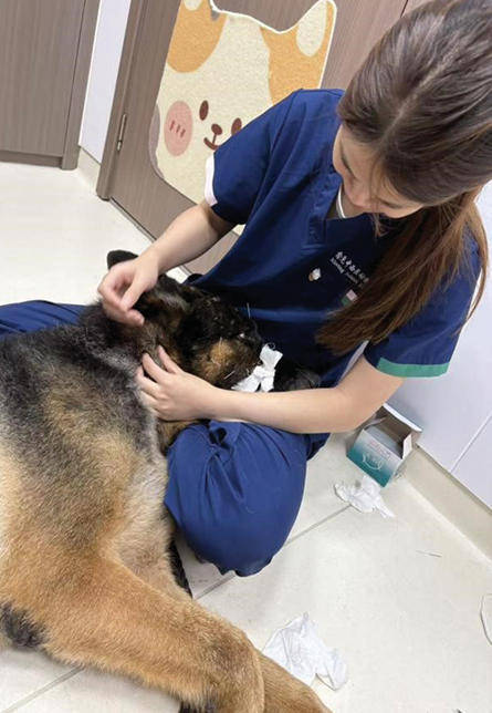 图为陈家燕在给宠物狗针灸。受访者供图
