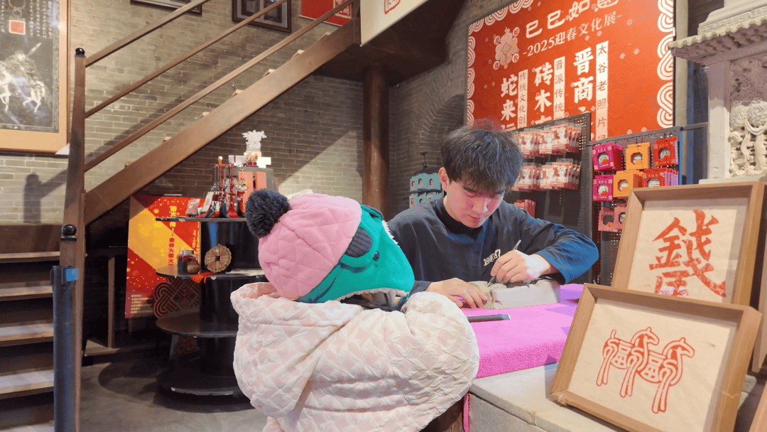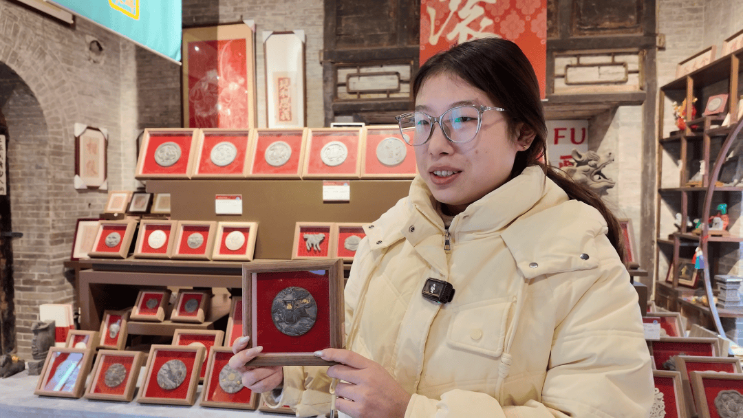 除了服饰和首饰,文创产品也被马年文化元素点亮。太谷古城内的一家晋派砖雕非遗文创店,富有特色的马年冰箱贴、拓片印品吸引不少游客驻足。这些融合传统雕刻技艺与当代审美的新文创,让古老砖雕走进日常生活,成为非遗焕发新活力的生动缩影。