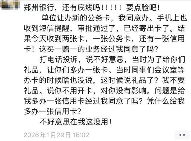 有的在办理房贷时捆绑信用卡,有的在开通储蓄卡时 “默认勾选” 信用卡申请,还有的像郑州银行这样,借着批量办理公务卡、工资卡的机会 “搭车发卡”。