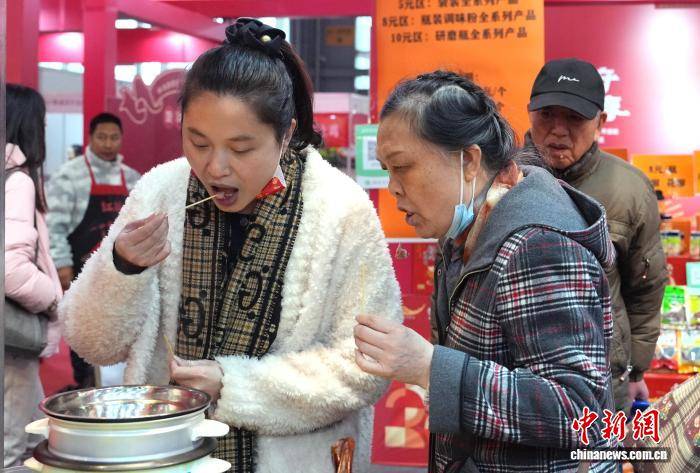 图为市民在新春年货购物节上品尝参展商品。中新社记者 安源 摄