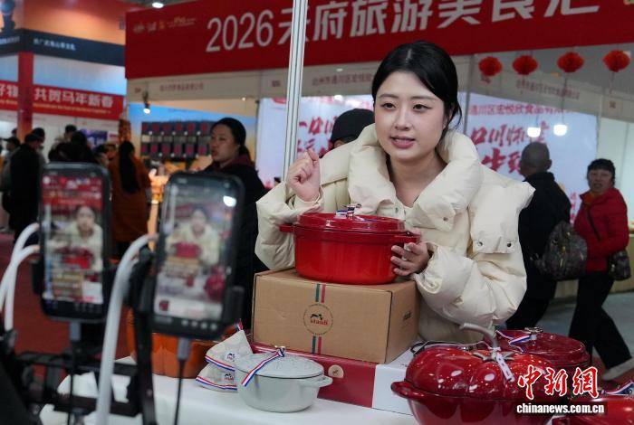 2月2日,在成都举办的第29届中国(四川)新春年货购物节吸引民众参观购物。本届四川年货节以“乐购全球年货,共享美好生活”为主题,5万平方米的超大展区犹如一个微缩的全球商品窗口。来自36个国家和地区、近30个省、自治区、直辖市、四川省内21个市州的上千家中外企业参展,从田间新鲜农产品到百年匠心老字号,从新潮科技好物到网红爆款单品,约10万种优质年货集中亮相。图为市民在新春年货购物节上的电商直播区。中新社记者 安源 摄