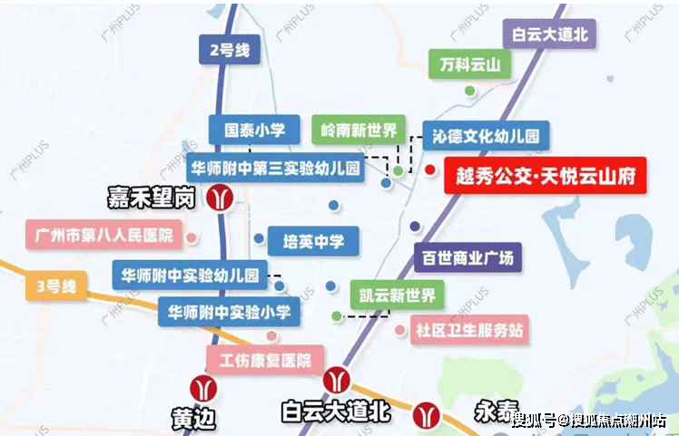 越秀公交.天悦云山府虽然不近地铁,距离14号线东平站步行距离1.7km,距离2/3号线嘉禾望岗站、白云大道北站步行距离约2km;无车一族需要公交接驳,但项目楼下就是公交TOD站点,可以通过公交无缝接驳2/3/14号线、18号线(在建)。下楼坐电梯直达公交站场,换乘地铁也就三四个站。