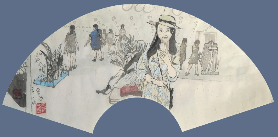 《购物自拍时光》 纸本水墨 39.5X19.5cm 2025年 严伟琪