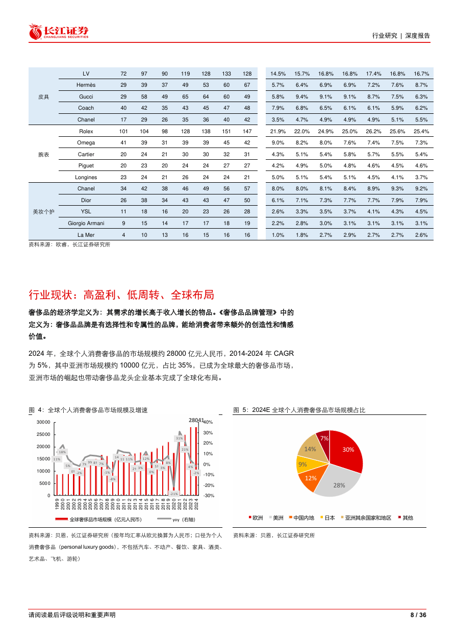 品类规模:2024年成衣鞋履约10,000亿元;皮具、珠宝、腕表和香化规模在4,000-8,000亿元之间
