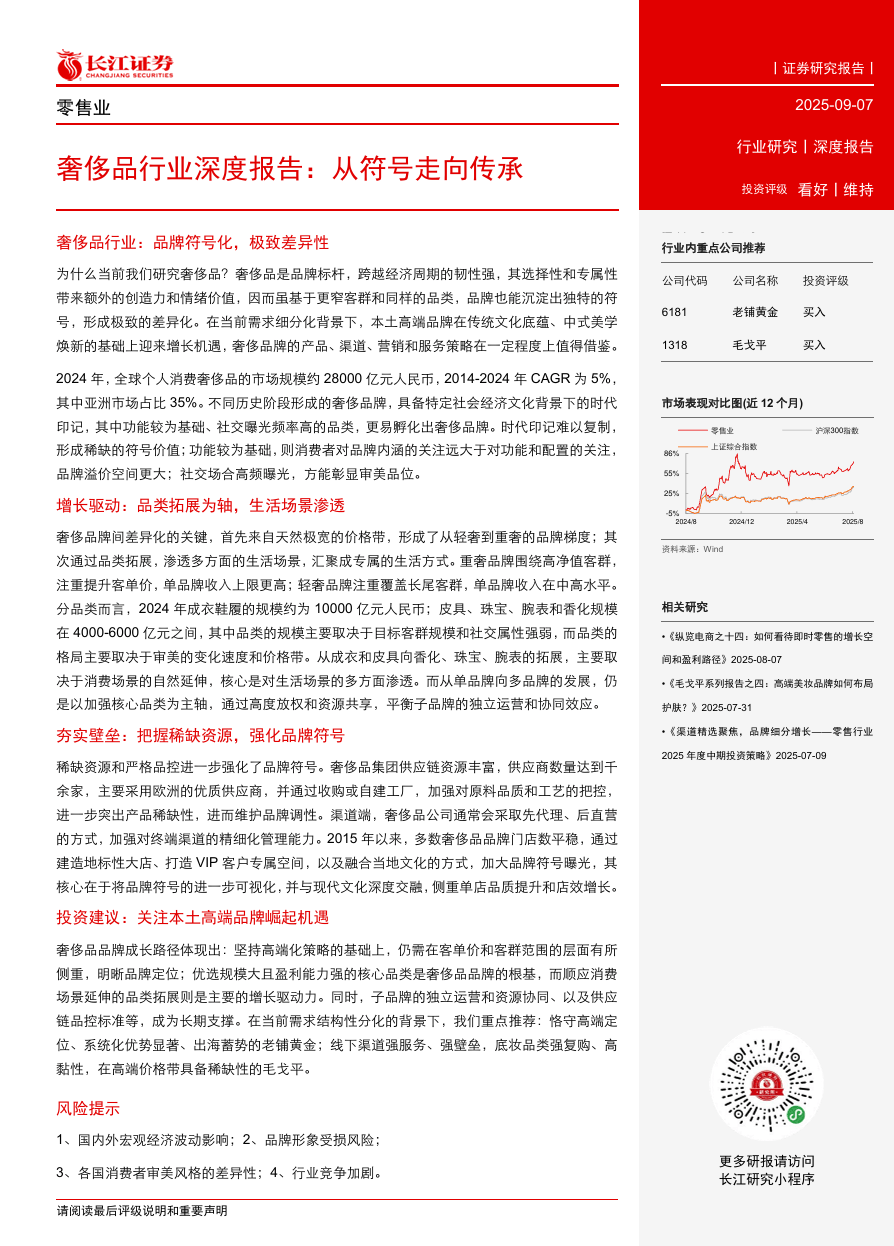 奢侈品是品牌标杆,跨越经济周期的韧性最强。其选择性和专属性带来新的创造力和情绪价值,因而最早不受客群和同侪的品类,品牌也被沉淀出独特的符号,形成极致的差异化。在当前需求细分化背景下,本土高端品牌打破传统定式、中央美学焕然的基础上迎来增长机遇。奢侈品牌的产业、渠道、营销和服务策略在一定程度上也值得借鉴。