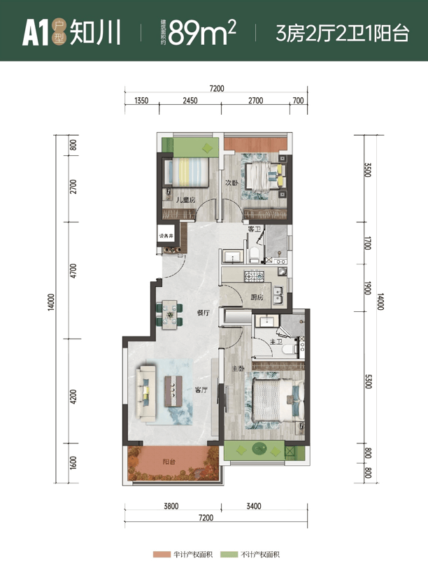 建面约89㎡户型相当于市场上建面约115㎡户型产品;建面约98㎡户型相当于市场上建面约135㎡户型产品;建面约123㎡户型相当于市场上建面约165㎡户型。低公摊高得房,同等面积更低价格,更大享受。