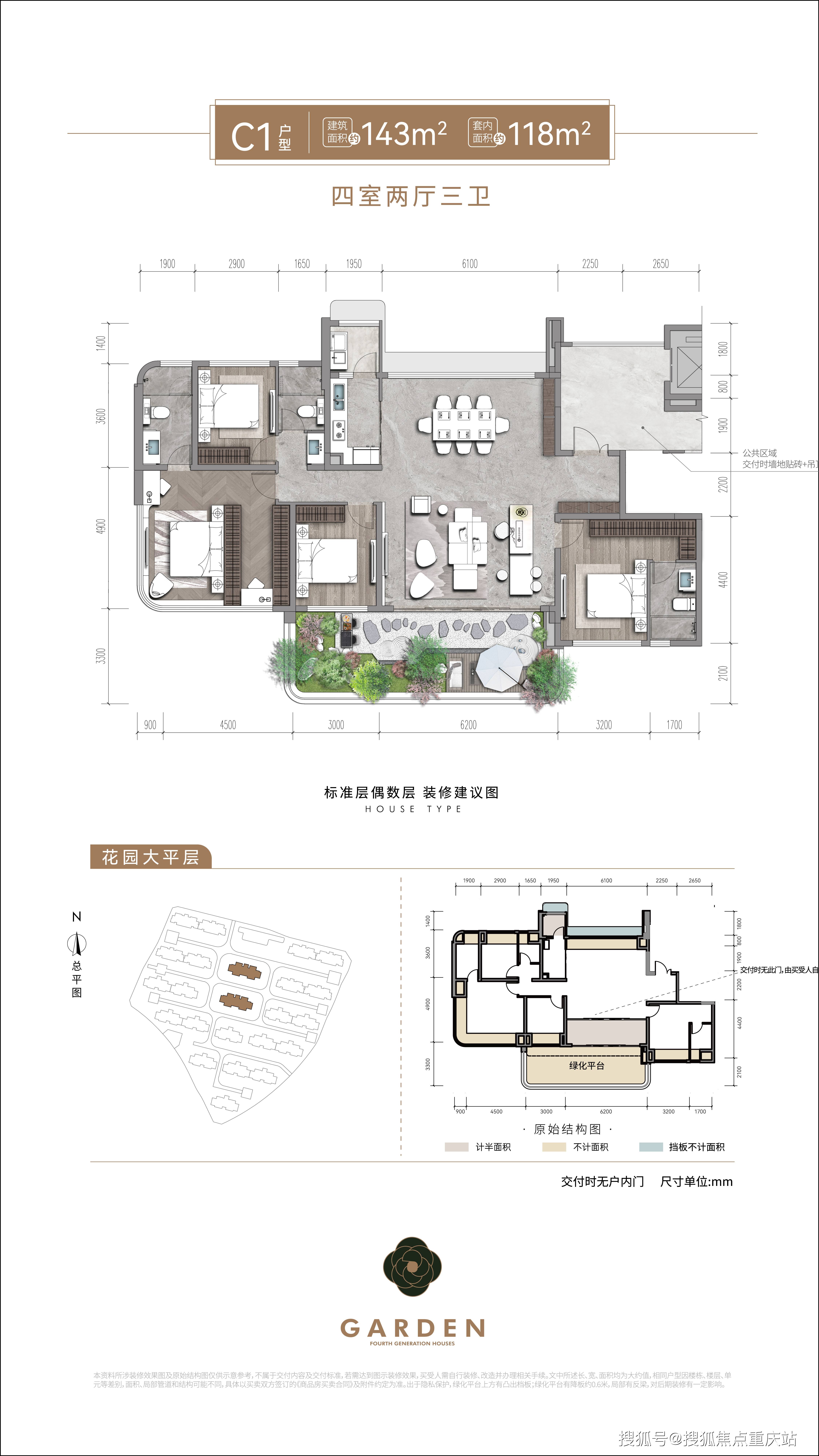 楼王洋房四代宅:建面143平 实际使用面积191平