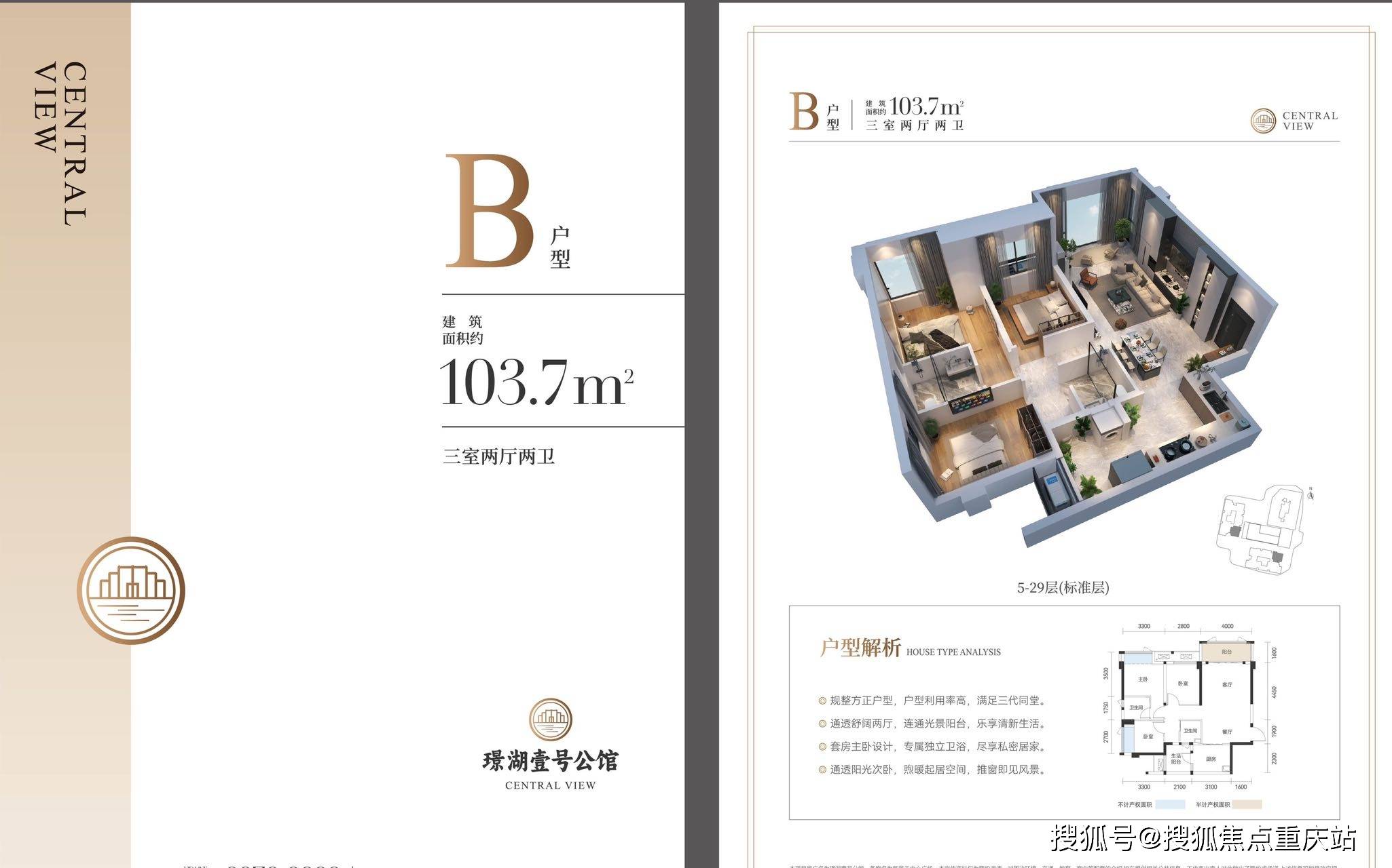 建面约103平套三