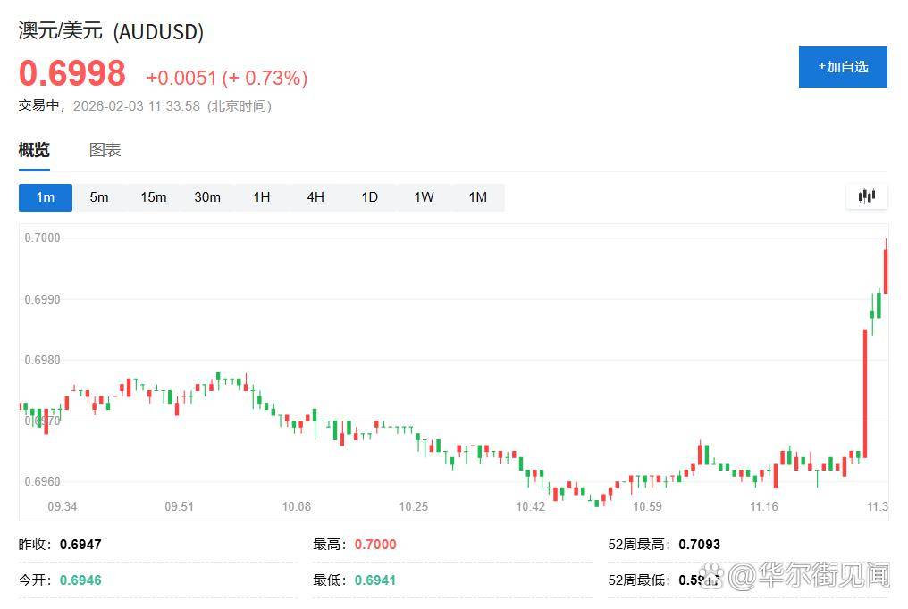 澳元/美元短线拉升,澳洲股指涨幅收窄,此前澳洲联储加息。