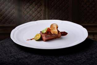 山菌炙烤澳洲和牛:粤式炭火炙烤锁住和牛脂香,东北山野珍菌吸饱肉汁,外焦里嫩兼具精致与豪放;