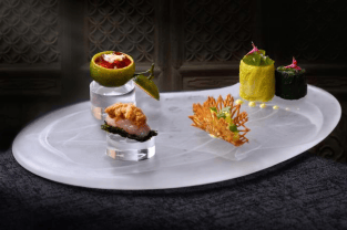 本次限定菜单以 “南北共生” 为核心,从餐前小点到收官甜品,串联起跨地域的风土精华,每一道菜品都是三大主厨技艺互补的结晶:
