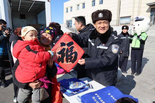 除讲解交通安全知识外,民警还向市民朋友赠送新春福字礼包、汽车安全锤以及印有交通安全宣传标语的纪念品,现场气氛热烈又温馨。