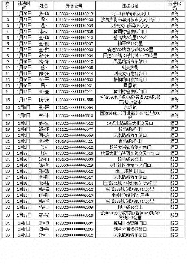 酒后驾车,法律严禁,危害极大,后果严重,教训惨痛,但有些驾驶人仍然心存侥幸,以身试法。文水交管大队曝光2026年1月份酒醉驾名单!希望广大驾驶人引以为戒。