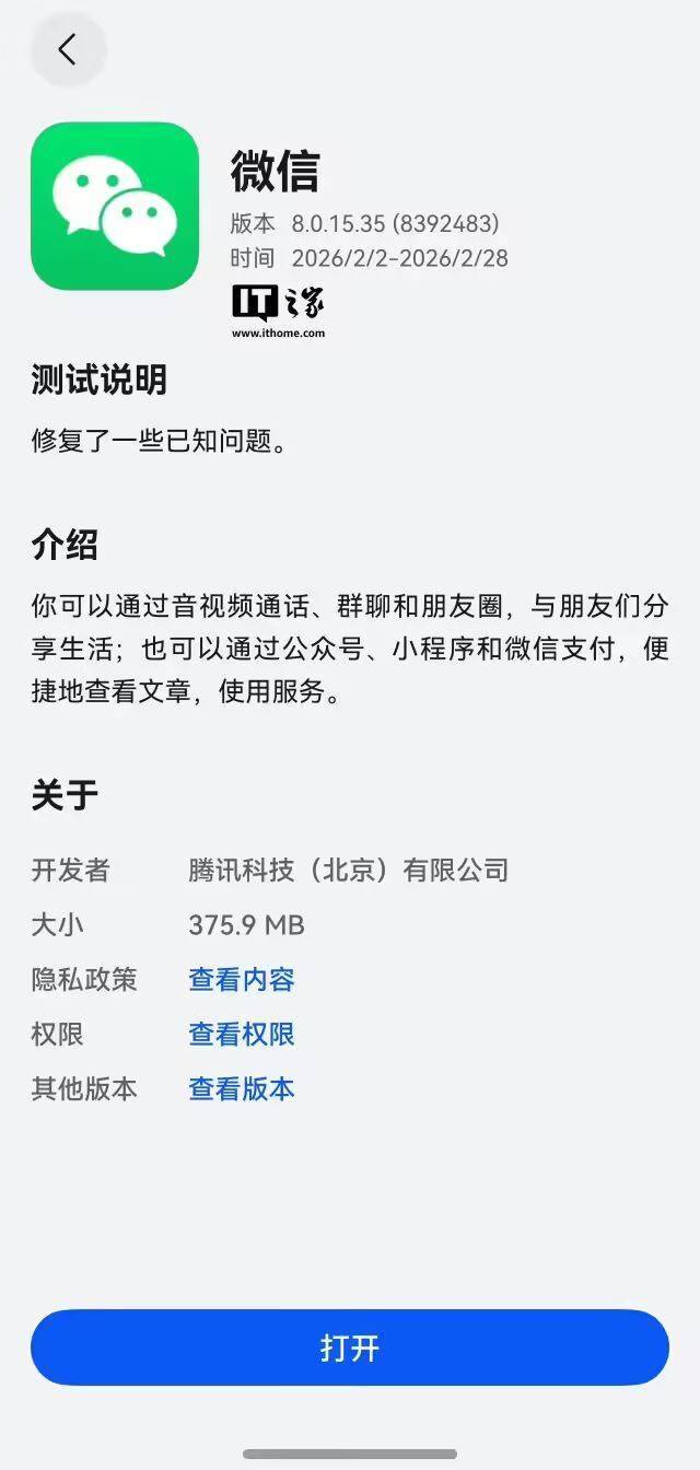 微信官方测试说明为“修复了一些已知问题”。但据用户反馈,该版本微信相较正式版新增如下特性(部分特性已在前一个邀测版本实现):