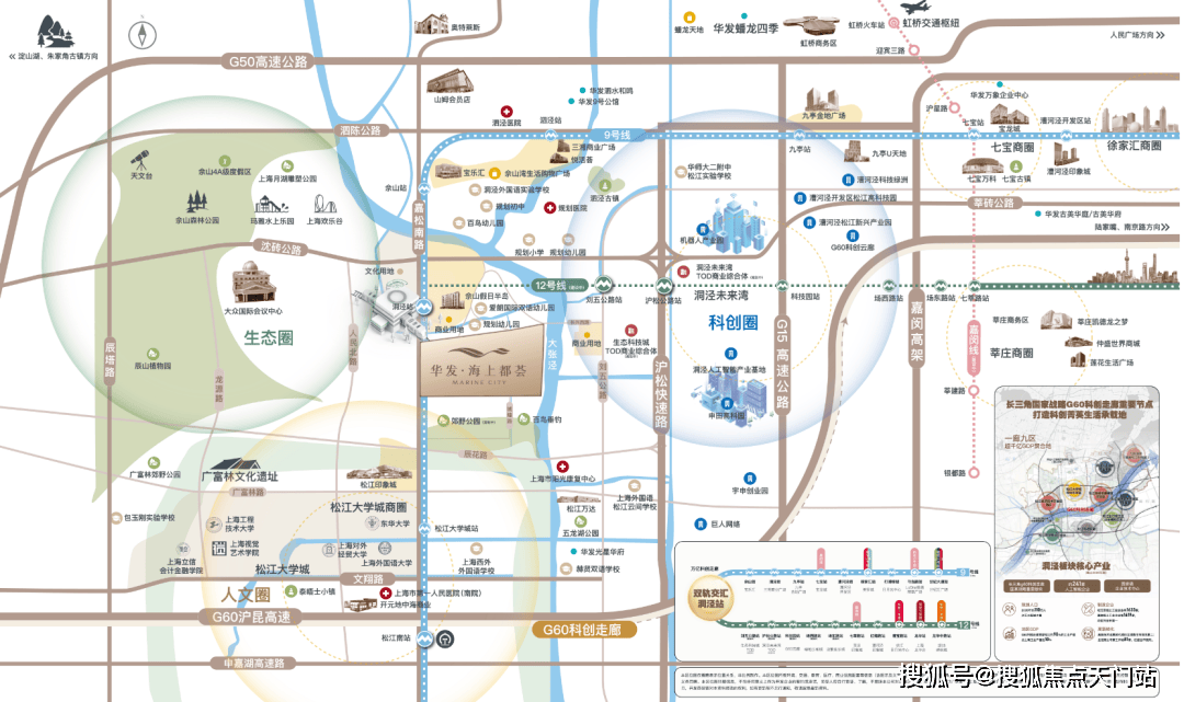 回过头来看洞泾现在的交通格局,作为9号线、12号线延伸线(在建中)、沪松快速路的黄金交汇点,它几乎串联了整个G60的科创能量,也成为松江链接传统市中心的咽喉枢纽,这样的板块不是未来上海西南潜力之地,谁会是?!