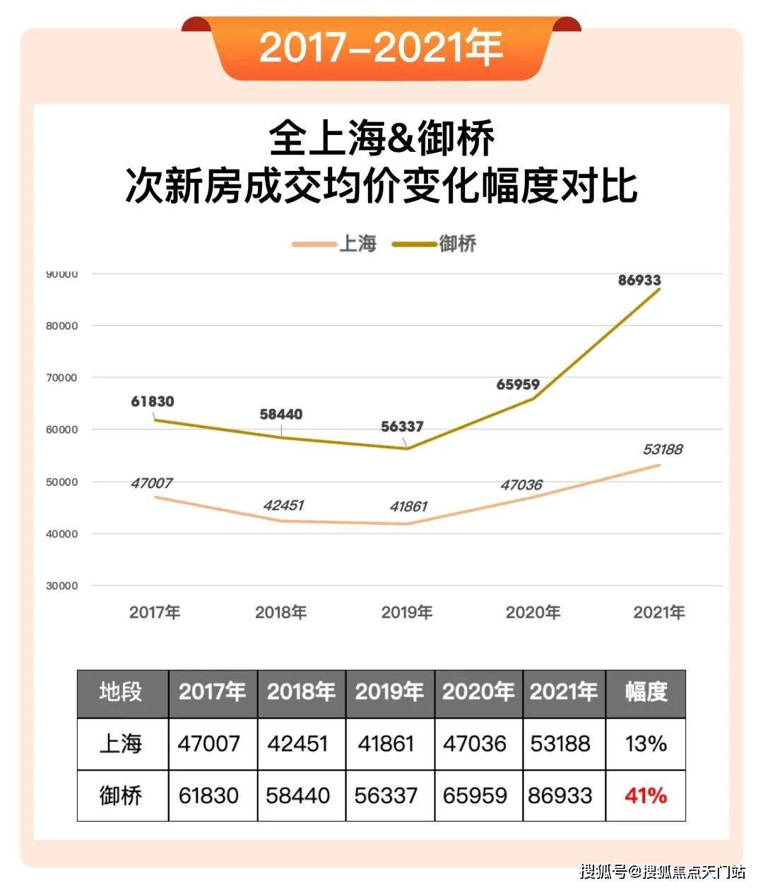 再看2017年开建,2021年运营的18号线,让御桥从11号线跃迁成为11&18号线双轨板块。在跃迁期间,御桥的次新房价格变化幅度几乎是全市大盘的3倍!