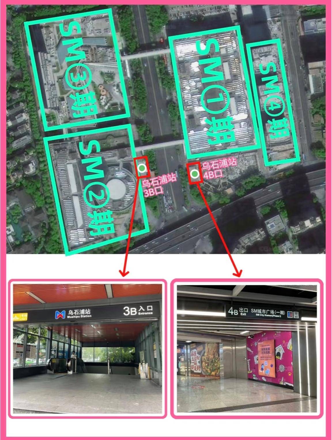 从4A出入口步行120米即可到达SM城市广场,而3A、3B出入口则直接通向SM新生活广场。这种无缝连接使得乌石浦站成为购物人群的首选交通方式。
