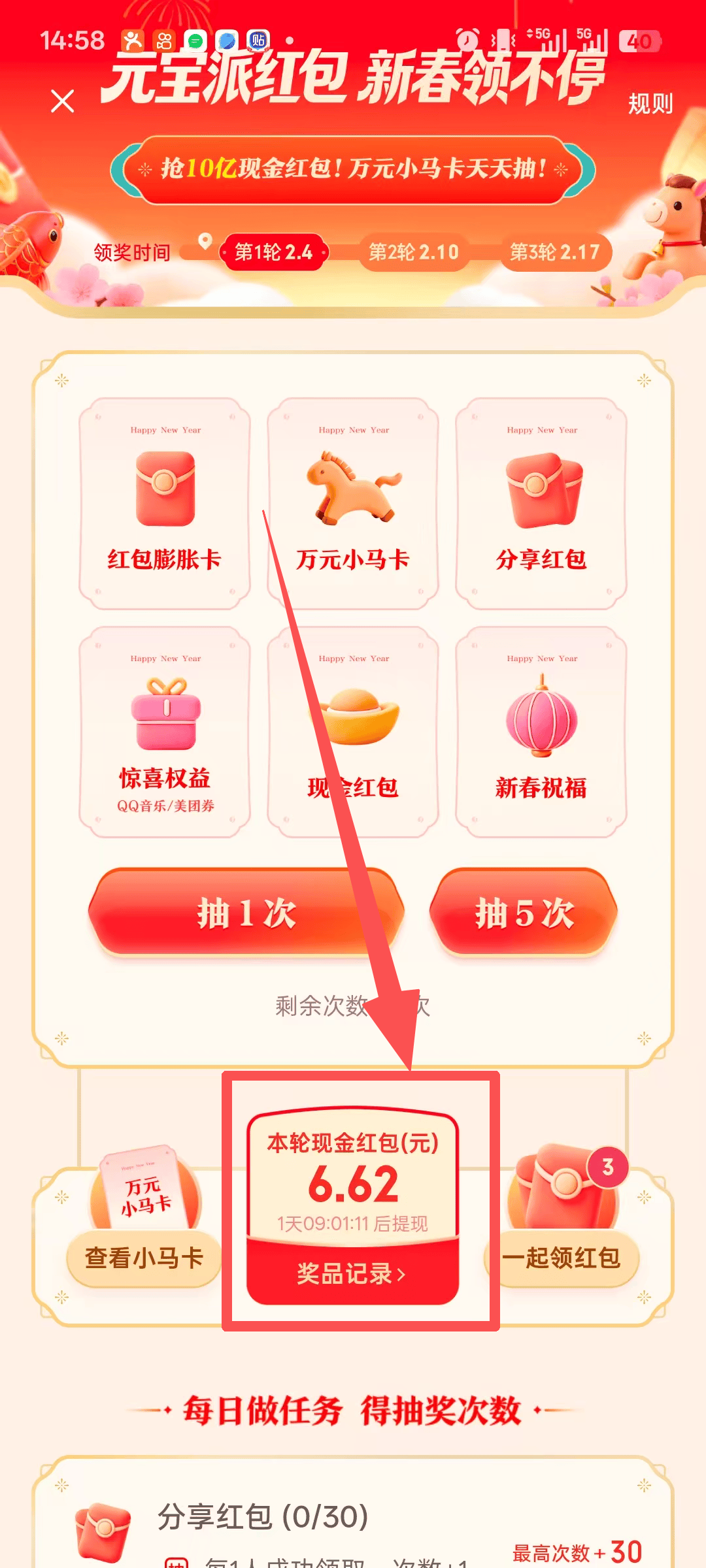✅活动参与形式:以元宝为例,元宝的活动参与方式最简单,每天登陆一下获得抽奖次数,点两下抽奖即可,然后到指定时间即可直接提现!小编已经领了6元多了