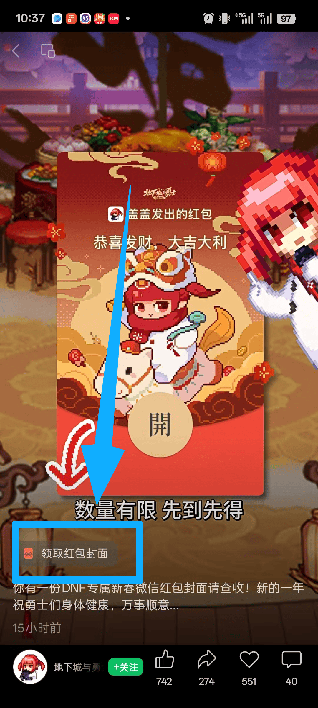 ✅领取方式:通过下方领取入口后进入到地下城与勇士微信视频号,直接点击领取