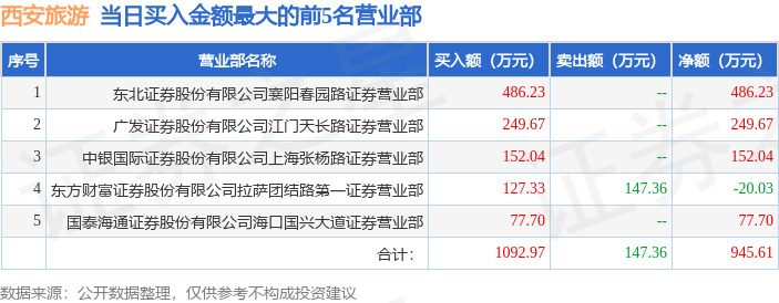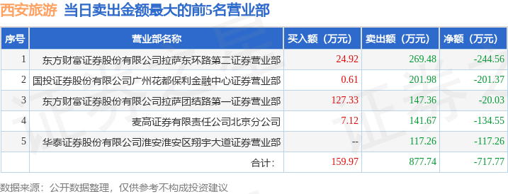 证券之星消息,沪深交易所2026年2月3日公布的交易公开信息显示,西安旅游(000610)因日跌幅偏离值达到7%的前5只证券登上龙虎榜。此次是近5个交易日内第1次上榜。