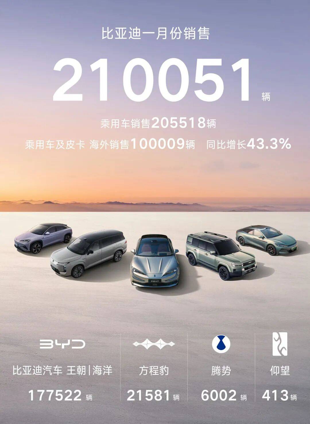 其中,具体来看,吉利汽车1月以27.02万辆位居次席,同比增长1%,环比下降约18%,其中出口6.05万辆,同比翻倍增长;而比亚迪1月销量21.01万辆,同比下滑30.11%,环比下降约25%,其中国内销量10.96万辆,同比大幅下滑,出口10.05万辆,同比增长51.47%,出口占比达47.8%,细分来看,王朝与海洋网合计销量17.75万辆。比亚迪海外市场成为重要支撑,出口规模已逼近奇瑞。