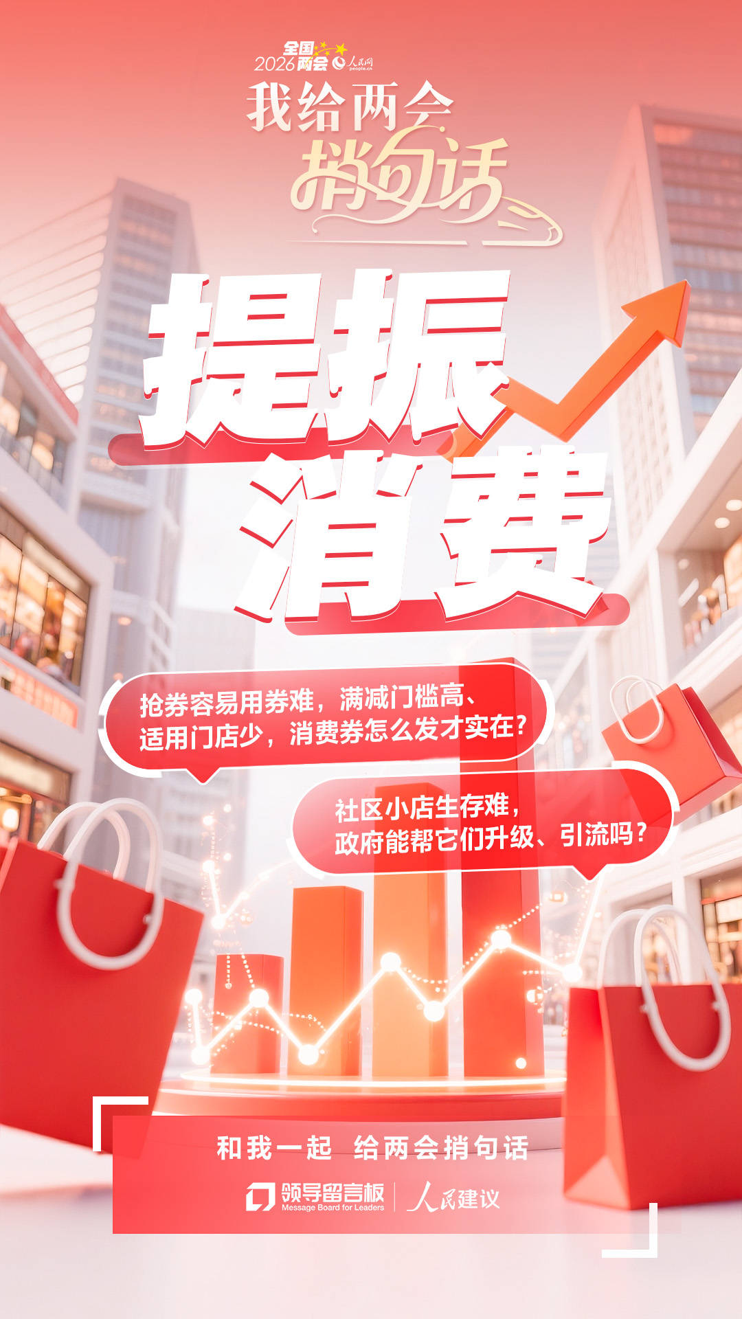 年味渐浓,你开启年货“买买买”模式了吗?消费券怎么发更实在?如何帮小店升级引流?欢迎你参与人民网2026年“我给两会捎句话”建言征集活动,意见建议直达“一把手”们,让新春消费更便利,让烟火气更浓郁。
