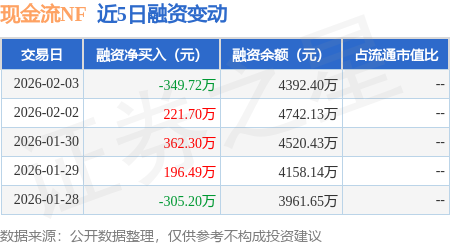 证券之星消息,2月3日,现金流NF(159232)融资买入188.2万元,融资偿还537.93万元,融资净卖出349.72万元,融资余额4392.4万元。