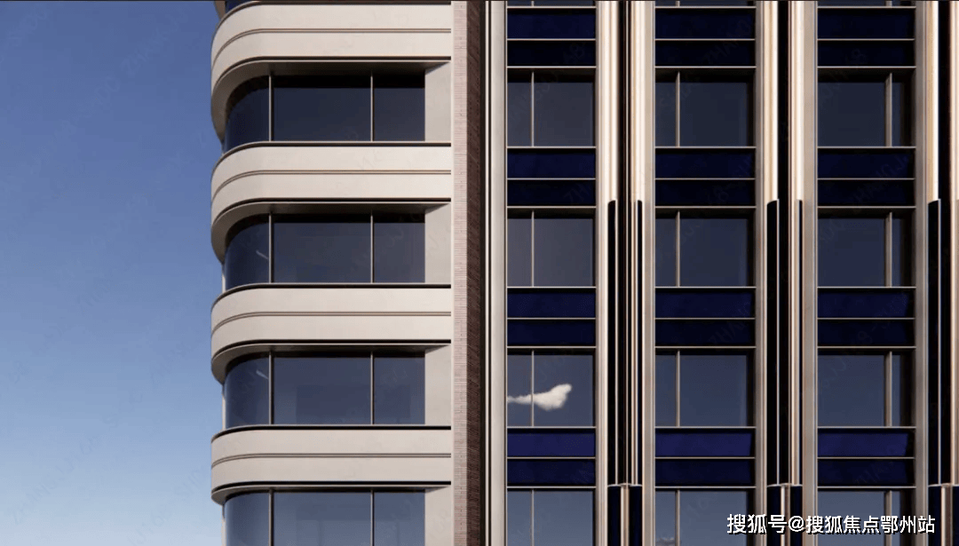 两侧采用弧形设计,让视野更大化,实现约270度观景,对望陆家嘴。
