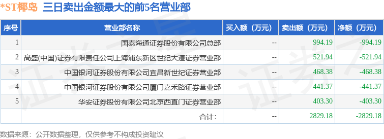 证券之星消息,沪深交易所2026年2月4日公布的交易公开信息显示,*ST椰岛(600238)因ST、*ST证券连续三个交易日内收盘价格跌幅偏离值累计达到12%的证券登上龙虎榜。此次是近5个交易日内第1次上榜。