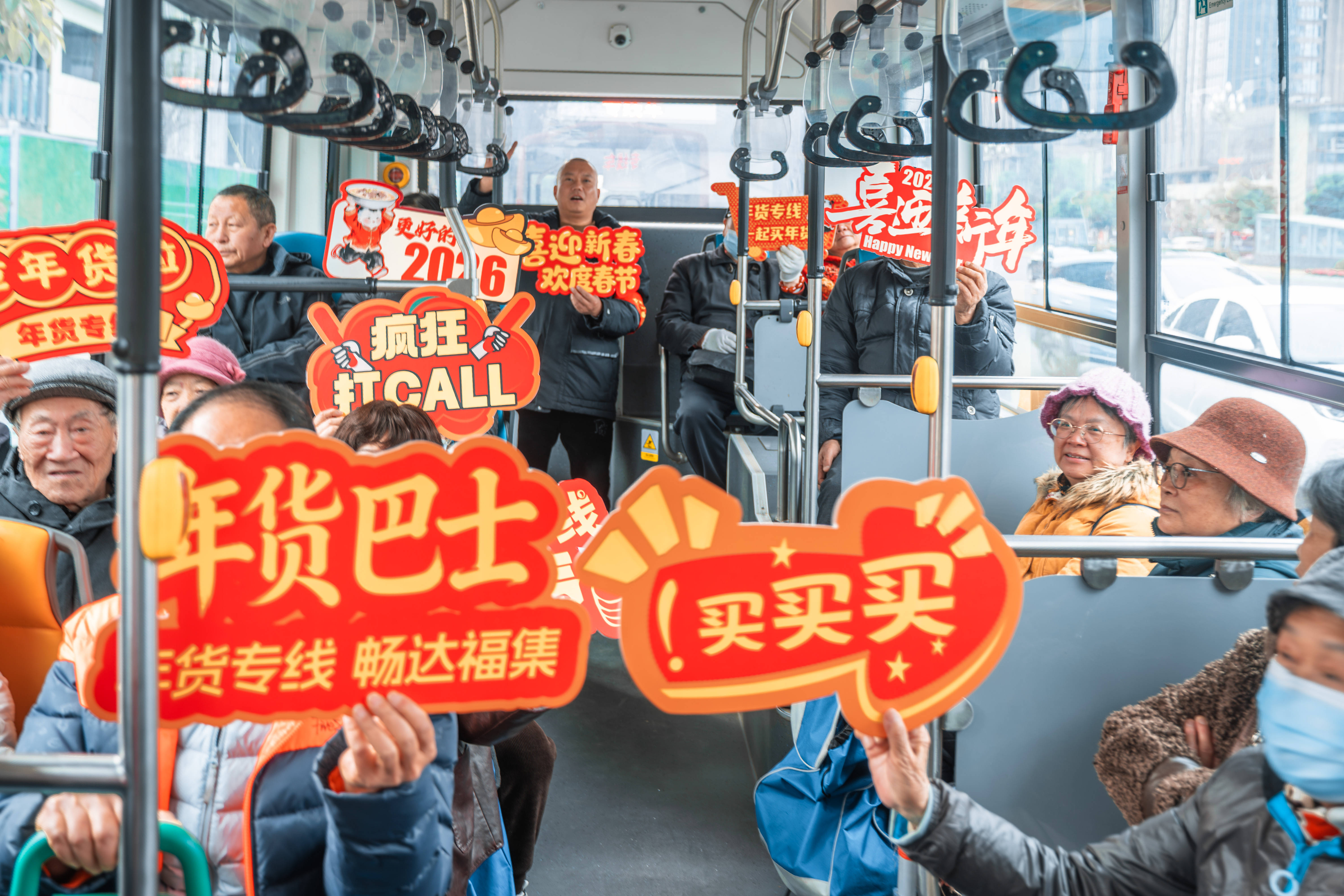 为营造浓厚的新春氛围,专线同步打造主题车厢,融入年货、市井烟火等新春元素,搭配暖心标语,让车厢内外兼具年味与温度。市民乘坐专线前往采购,既能享受便捷出行,也能沉浸式感受新春赶集的仪式感,让采购路程成为新春体验的一部分。