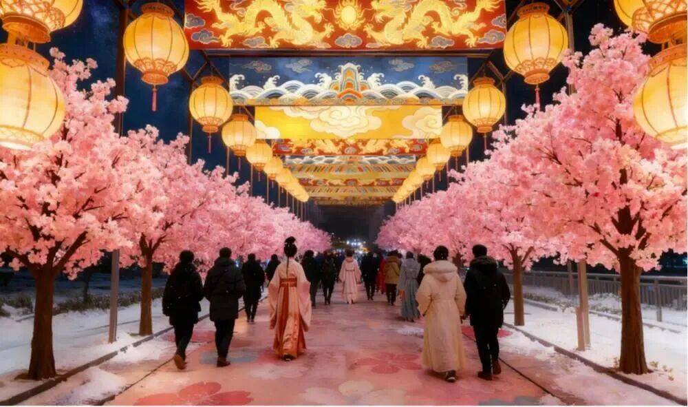 海淀区文化和旅游局副局长陈晓静介绍,在圆明园、同庆街、畅春新园、颐和园、东宫门这些三山五园的核心区域,打造了“一园一主题、一街一特色”差异化布局的盛会。圆明园白天有玩雪、市集,还有巡游表演,晚上有新春灯会;畅春新园有书画艺术,还有互动科技,设置了机械马装置、文化市集等。三大会场实现主题联动、交通接驳、票务互通,并设置“集章集卡”“银票系统”等沉浸式互动体验。