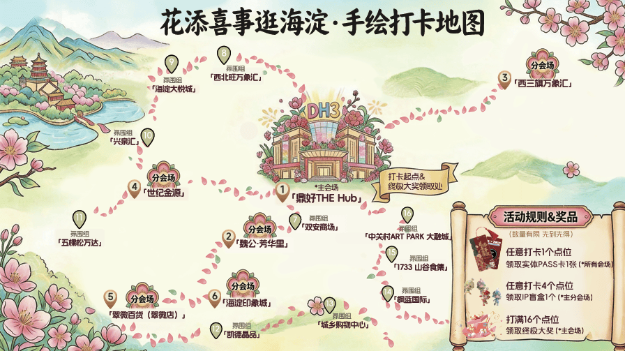 2月7日到10日,海淀全区16个商场联动,重磅推出“花添喜事逛海淀”主题活动,开展百余项春节促消费活动,还将首次推出PASS卡打卡活动,并发布手绘打卡地图、主题IP系列盲盒等特色文创产品,进一步提升市民参与感。