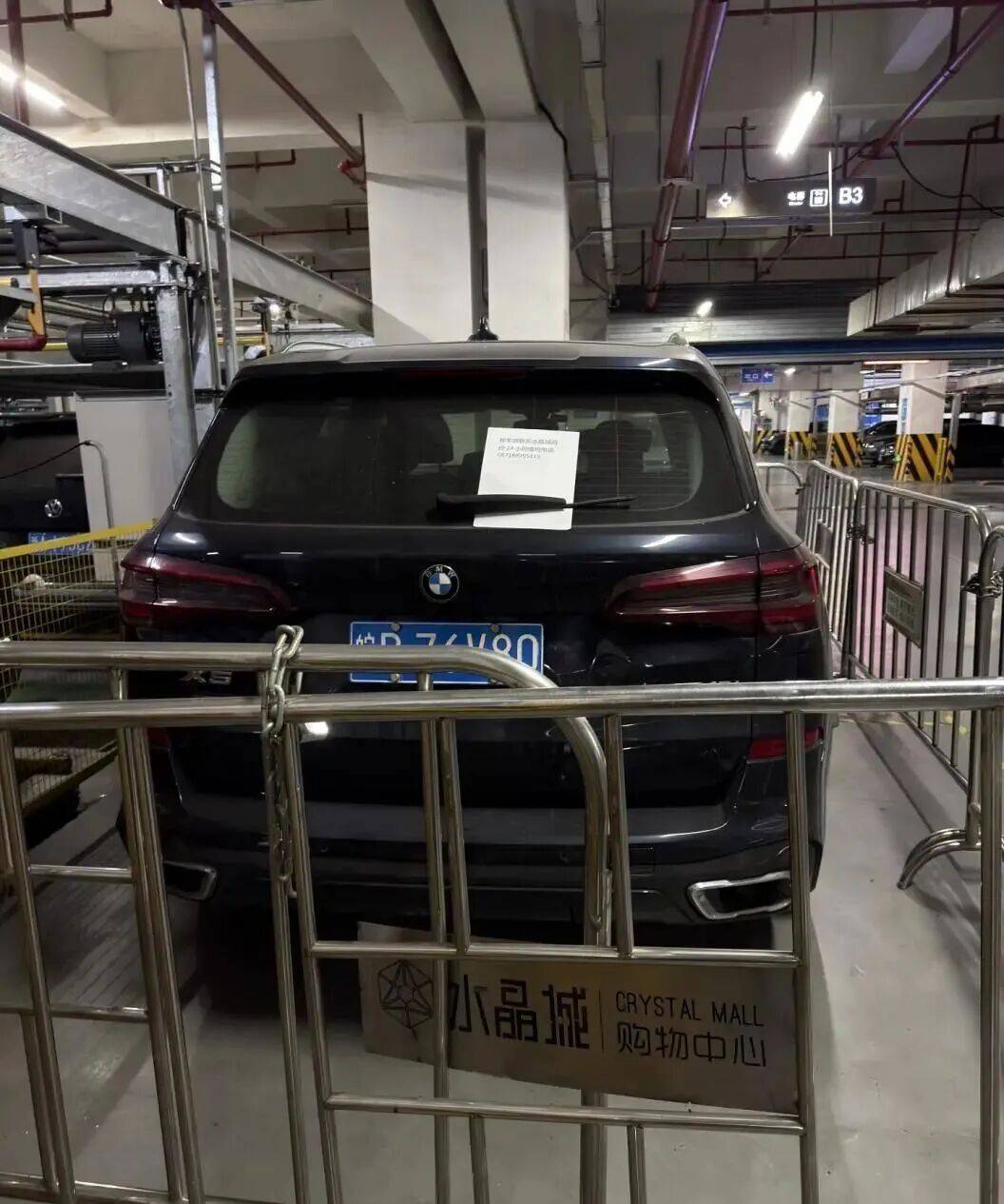 记者从网传图片上看到,这辆黑色宝马x5已被围栏包围,后窗上还贴有一张纸,上面写着,“移车请联系水晶城消控24小时值班电话……”。根据缴费信息显示,该车入场时间为2025年3月1日凌晨2点49分,停车总时长达8101小时,停车金额为16900元。