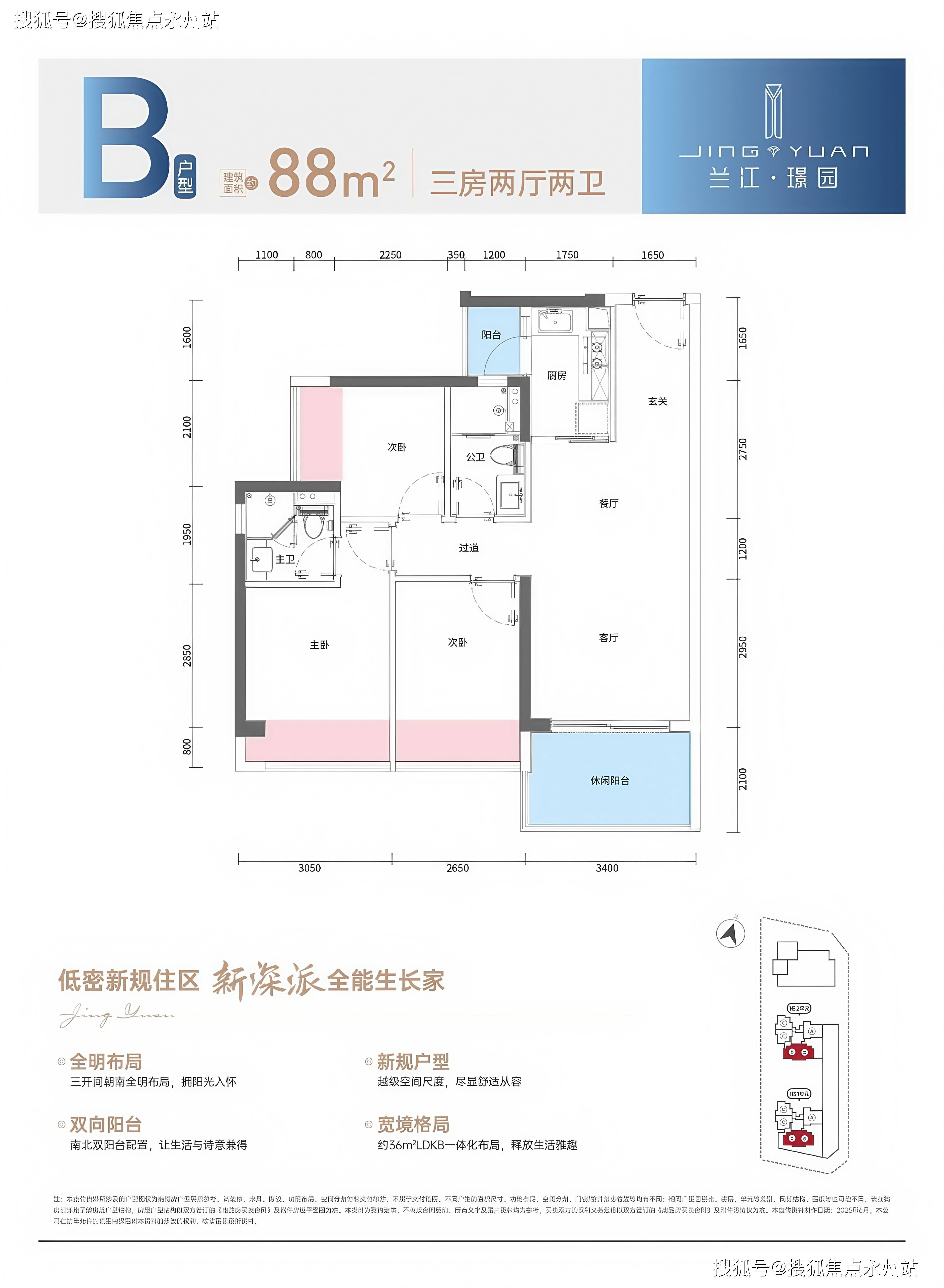 78-89㎡三房:竖厅设计,主卧带 270° 转角飘窗,客餐厅一体化,进深比约 1:1.5,采光系数≥1.5(优于行业标准 1.2)