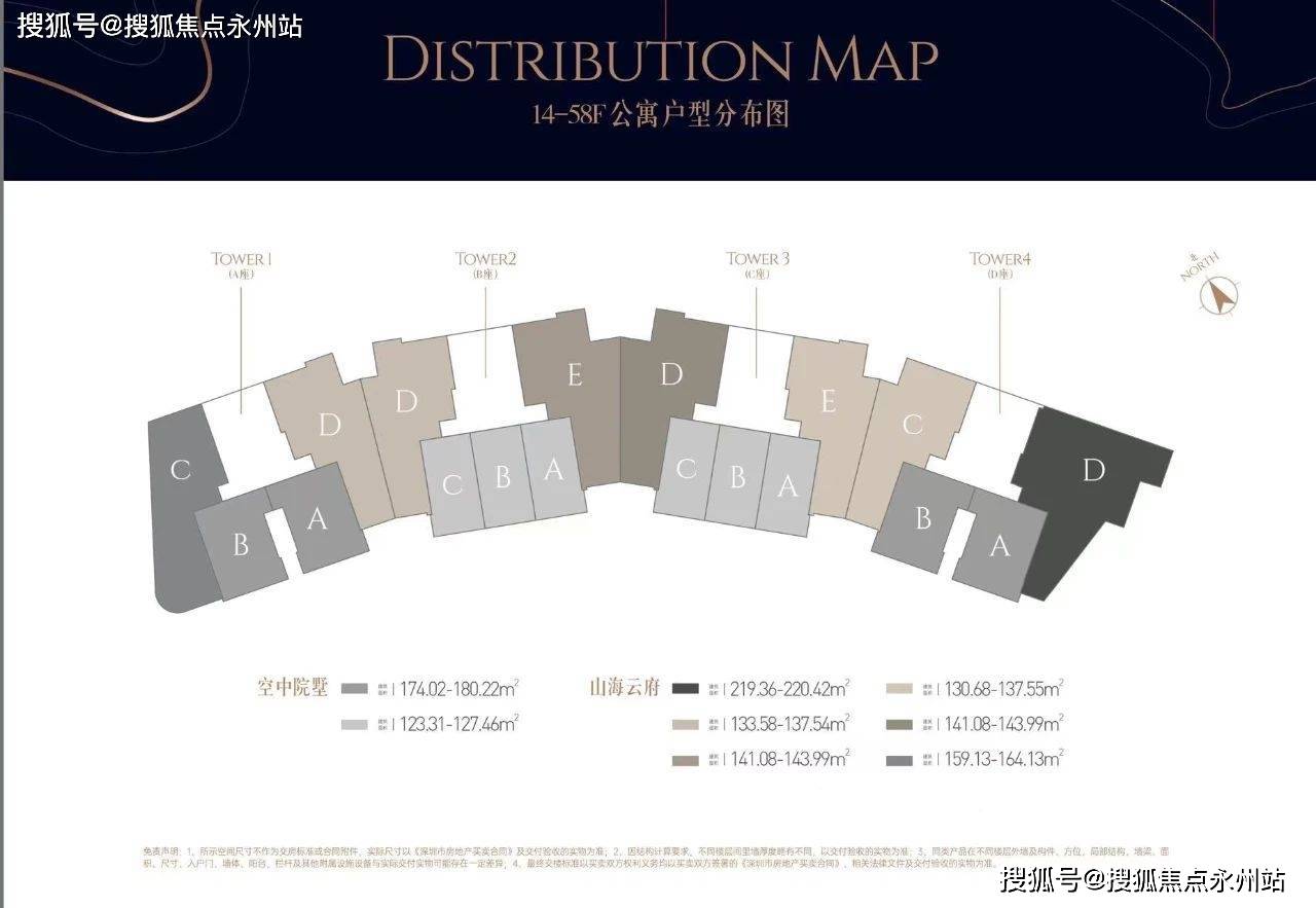 主力产品为建面约123-220平米的海景客厅城市院墅,户户看海户户向阳,包括约123-180平米的空中院墅和约133-220平米的山海云府。