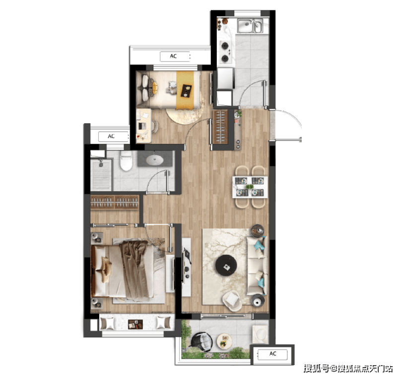 建面约74㎡户型样板间实拍