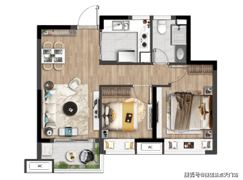 建面约74㎡两室两厅一卫