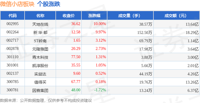 证券之星消息,2月5日微信小店板块较上一交易日上涨3.11%,天地在线领涨。当日上证指数报收于4075.92,下跌0.64%。深证成指报收于13952.71,下跌1.44%。微信小店板块个股涨跌见下表: