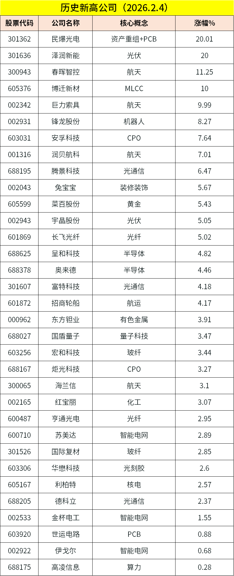 2、半导体 | 据IT之家2月4日消息,三星电子晶圆代工中心近日已与主要合作伙伴沟通,考虑针对4nm和8nm工艺提价,预计涨幅约为10%。此外,台积电此前已持续上调工艺价格,原因是AI需求快速增长带动订单量持续上升。报道指出,台积电今年也以人工成本、原材料与能源等成本上涨为由,预告将进行价格上调。业内甚至出现“部分工艺最高可能上涨20%”的说法。在此情况下,即便三星将价格上调10%,也仍可维持一定的价格竞争力。