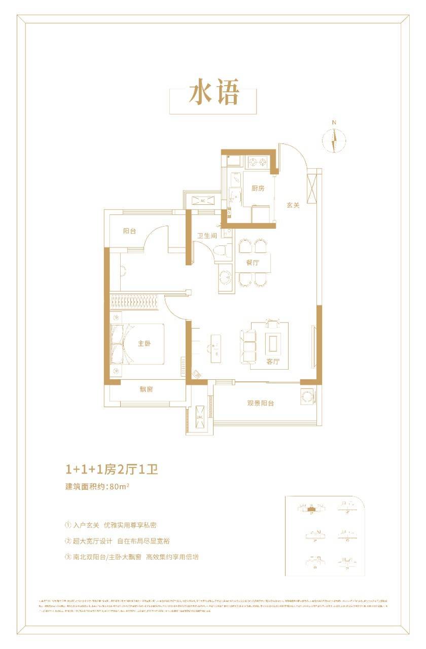 【水语】建筑面积约80㎡ (1+1+1房2厅1卫)