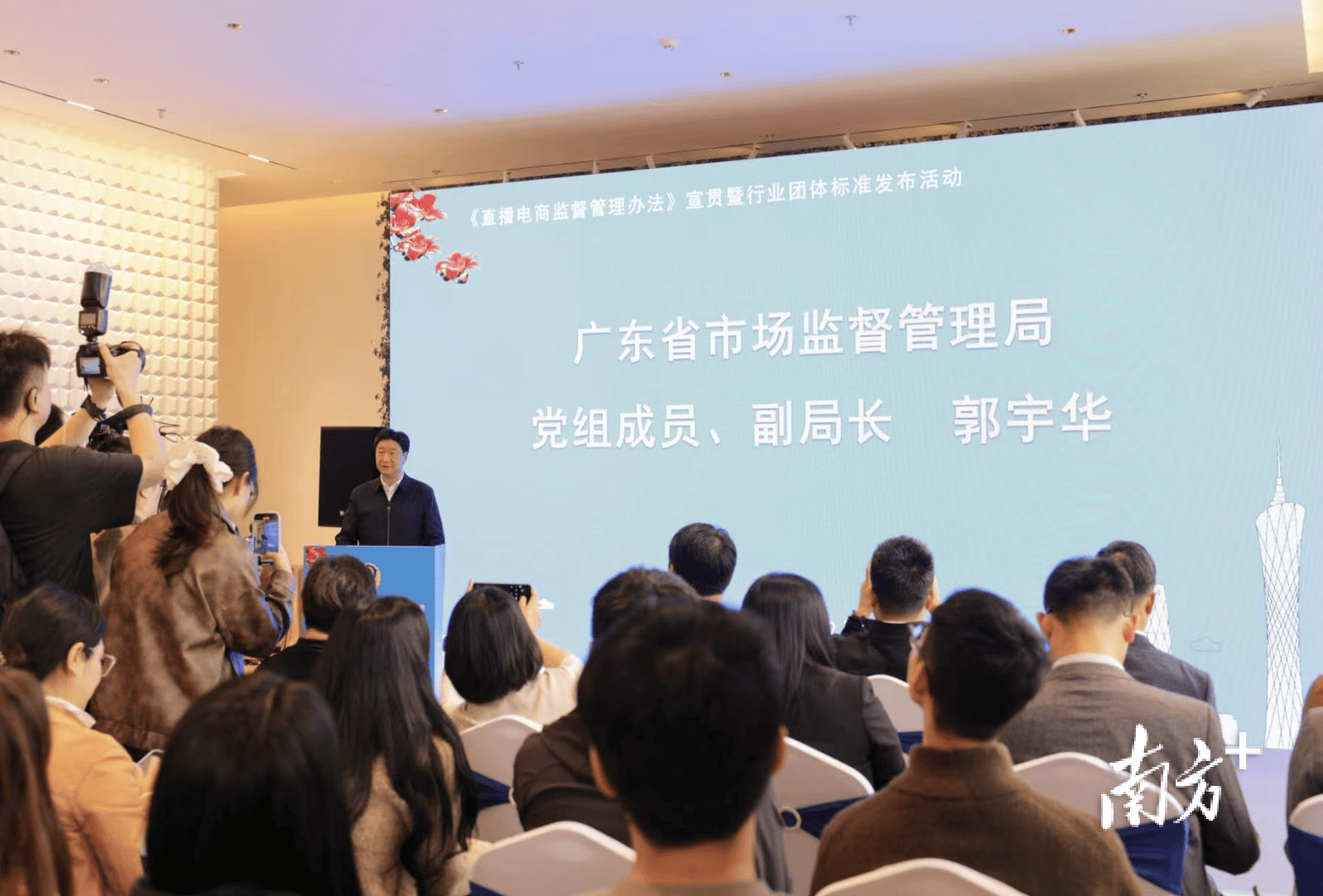 2月5日下午,广东省市场监管局指导,广州市市场监管局联合广东省网商协会、广州市直播电商协会举办华南地区首场《直播电商监督管理办法》宣贯暨《放心消费直播间建设与管理规范》团体标准发布活动。广东省市场监管局、广州市市场监管局负责同志出席活动并致辞。