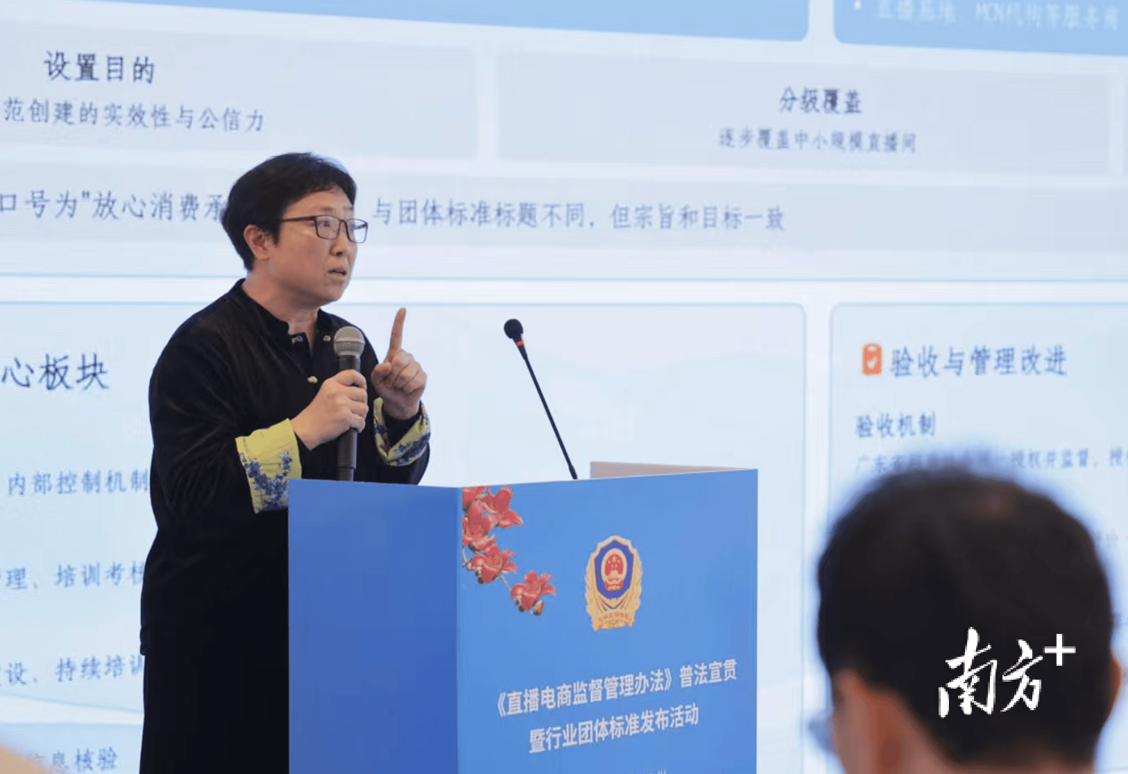 广东省市场监管局负责人在致辞中表示,直播电商是数字经济的新兴业态,更是推动消费升级、促进经济增长的重要力量。广东作为数字经济大省、商贸流通大省,近年来直播电商交易规模位居全国前列,在行业快速发展的同时,广东省始终着力构建“政府监管、部门协同、行业自律、市场参与、社会监督”的多元治理机制,推动行业规范提质。强调广东省局组织指导广州市局开展《直播电商监督管理办法》宣贯及团标发布活动,是广东省、广州市局认真贯彻实施《直播电商监督管理办法》的具体行动,是各级政府、行业协会、企业协同发力、共促发展的生动实践,是优化消费环境三年行动培育放心消费直播间试点任务的初步成果。要求直播相关经营主体要坚守合规底线,将合规要求嵌入经营活动全流程,增强行业发展能力;要探索创新驱动,在合规框架内积极探索模式创新、技术创新、服务创新,激发行业内生动力;要强化社会共治,凝聚协同发展合力,广东各级市场监管部门将与业界各方携手,推动直播电商行业在规范中发展、在发展中提质,为广东在推进中国式现代化建设中走在前列作出更大贡献。