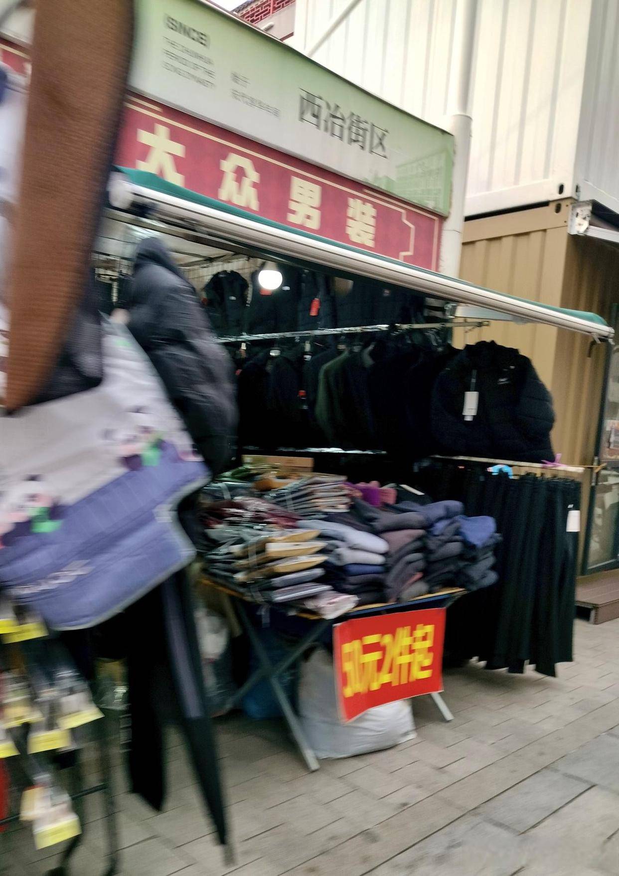 晒图笔记大赛步行街买服装裤子摊位搞促销,50元2件,价格倒不算贵。
