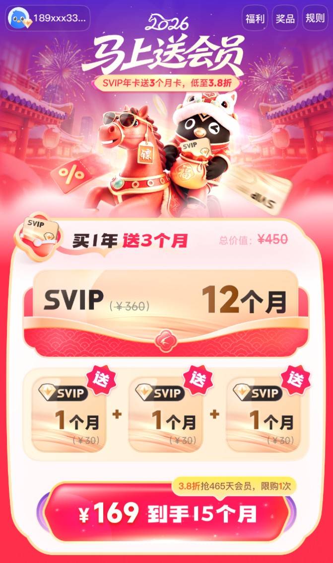 本次新春福利活动主打“马”上优惠、买赠加“马”,两大套餐贴合不同使用需求:价值450元的迅雷超级会员年卡套餐,活动期间低至3.8折,169元即可获得“12个月基础超级会员+3个月赠送超级会员”,一次性到手465天迅雷超级会员,日均花费不足0.37元。