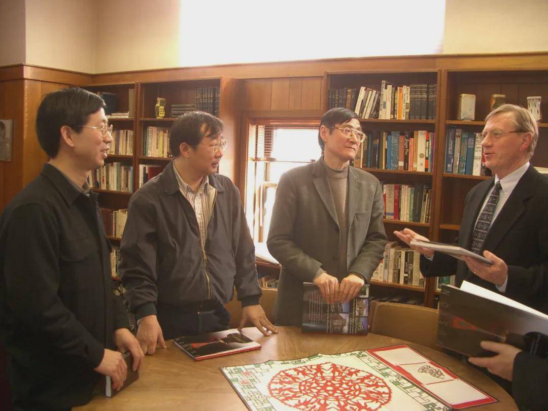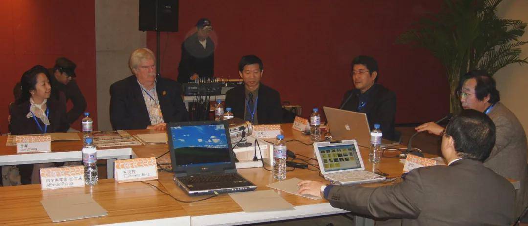 2007年时任中央美术学院校领导与设计学院团队研讨交通工具设计教学(右起:潘公凯、梁明、许平、王敏、徐冰)