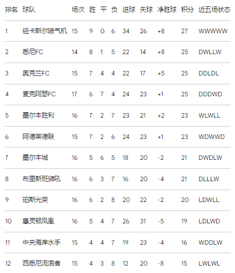 从宏观视角观察,2025/26赛季的澳超展现出了前所未有的不确定性。纽卡斯尔喷气机(Newcastle Jets)以27分领跑,紧随其后的是悉尼FC和新加盟的奥克兰FC 。在这种背景下,曾经的霸主墨尔本城目前仅积21分,位列联赛第7位,而西悉尼流浪者则以15分惨遭垫底,位列第12位 。这场比赛对于双方而言,都是一场必须取胜的“生存之战”。西悉尼流浪者渴望在临时教练盖瑞·范·埃格蒙德(Gary van Egmond)的带领下止住颓势,而墨尔本城则需要在亚冠精英联赛(AFC Champions League Elite)的重压下,证明其依然具备在国内联赛中争冠的深度与韧性 。